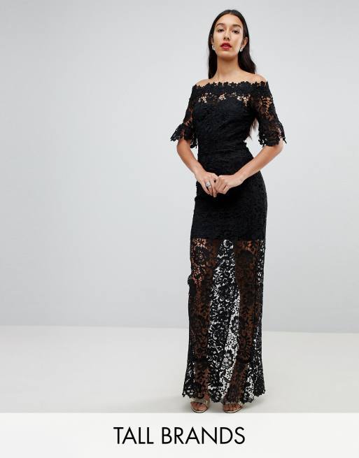 Paper Dolls Tall Bardot Lace Maxi Dress With Frill Detail